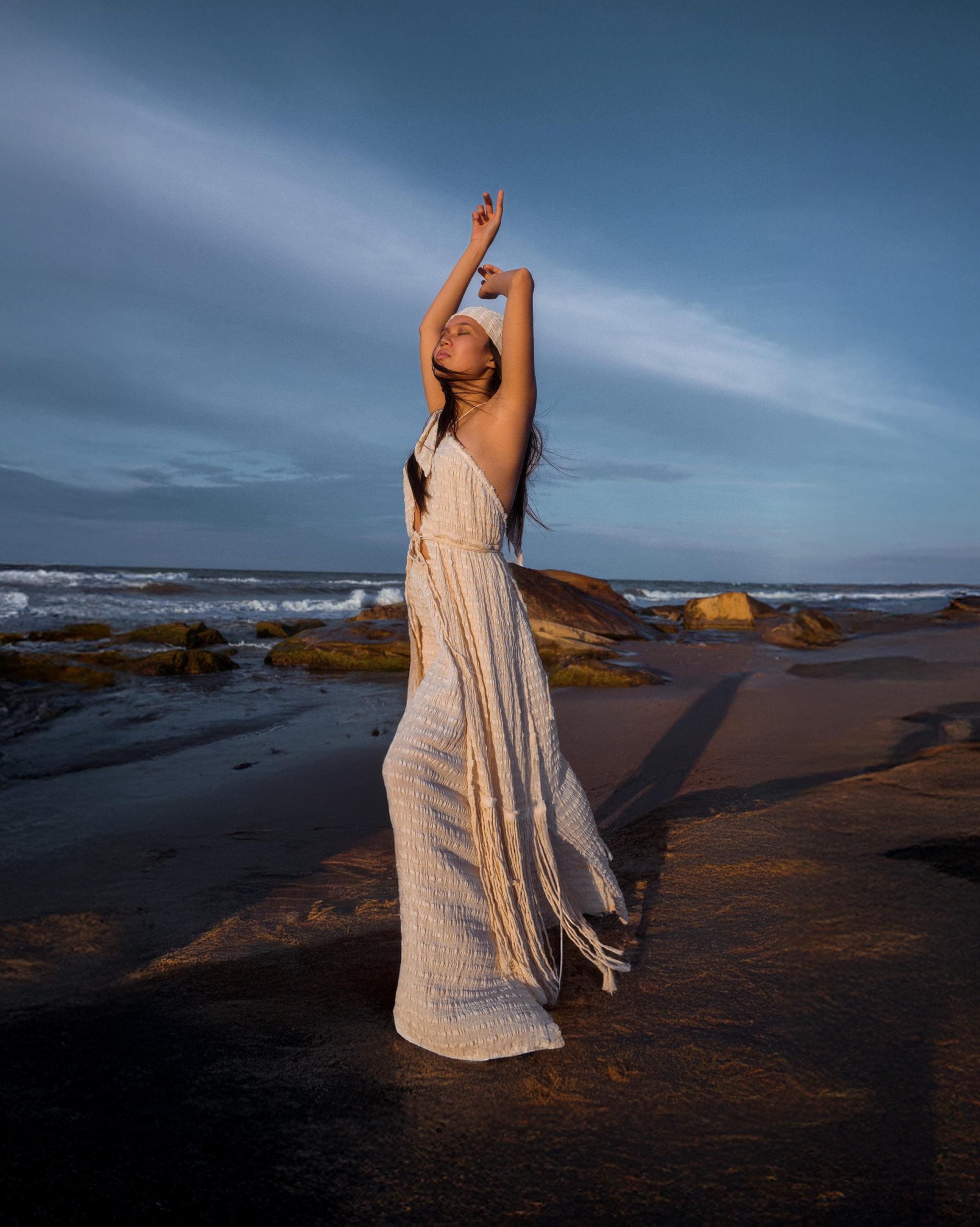 Hand wash in cold water and hang to dry to preserve the fabricโs texture.